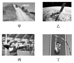 A.图甲中汽车匀速下坡的过程中机械能守恒B.图乙中卫星绕地球做匀速圆周运动时所受合力为零,动能不变C.图丙中弓被拉开过程弹性势能减少了D.图丁中撑竿跳高运动员在上升过程中机械能增大解析:图甲中汽车匀速下坡的过程中动能不变,重力势能减小,机械能减小,故A错误;图乙中卫星绕地球做匀速圆周运动时所受合力提供向心力则不为0,匀速圆周运动速度大小不变,则动能不变,故B错误;图丙中弓被拉开过程橡皮筋形变增大,弹性势能增大,故C错误;图丁中撑竿跳高运动员在上升过程中竿对运动员做正功,运动员机械能增大,故D正确。答案:D