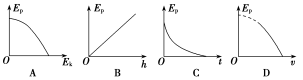 A.质量为4m的小球 B.质量为3m的小球C.质量为2m的小球 D.质量为5m的小球解析:甲图将质量为m的小球以速度v0竖直向上抛出,小球上升h高度,此时速度为零;乙图将质量为2m的小球以速度v0滑上曲面,小球若能到达h高度,则此时速度应该至少为,则此位置动能与重力势能之和大于初位置的动能与重力势能之和,因此不可能;丙图将质量为3m的小球以速度v0滑上曲面,小球若从最高点抛出,做斜抛运动,则到达最高点时速度不为零,根据机械能守恒可知,不可能达到h高度;丁图将质量为4m的小球以速度v0滑上曲面,小球若能到达h高度,则此时速度为零,根据机械能守恒定律可知,满足条件;戊图将质量为5m的小球以速度v0滑上曲面,小球从最高点抛出,做斜抛运动,则此时到达最高点的速度不为零,根据机械能守恒可知,不可能达到h高度。故选A。答案:A10.物体从某一高度做初速度为v0的平抛运动,Ep为物体的重力势能,Ek为物体的动能,h为下落的高度,t为飞行时间,v为物体的速度大小。以水平地面为零势能面,不计空气阻力,下列反映Ep与各物理量之间关系的图像可能正确的是( )