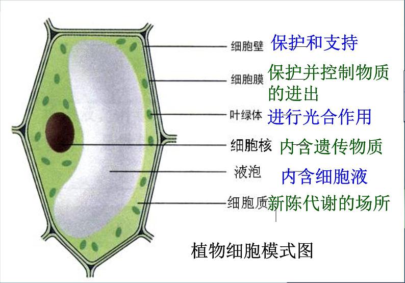 这是一份初中生物人教版 (新课标)七年级上册第三节 动物细胞背景图课件ppt,共33页。PPT课件主要包含了保护和支持,保护并控制物质的进出,进行光合作用,内含遗传物质,内含细胞液,新陈代谢的场所,植物细胞模式图,生理盐水,稀碘液,吸水纸等内容,欢迎下载使用。