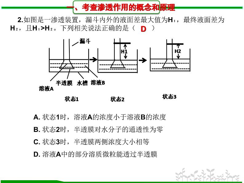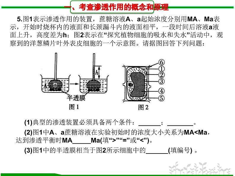 一、考查渗透作用的概念和原理
