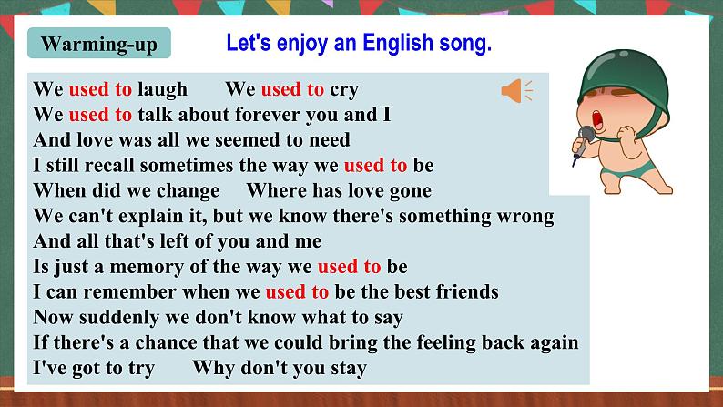 这是一份九年级全册Section B完美版ppt课件,文件包含人教新目标版英语九上Unit4《Iusedtobeafraidofthedark》SectionB1a-1e课件pptx、SectionB1cmp3、SectionB1d2mp3、SectionB1dmp3、TheWayWeUsedtoBe_clipmp3、sectionb1d21mp3、sectionb1d22mp3、童年--英语版mp3、童年-英文版_标清mp4等9份课件配套教学资源,其中PPT共33页, 欢迎下载使用。