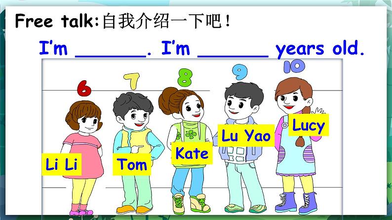 3.能够在语境中运用句型“—How old are you? —I’m…years old.”谈论年龄