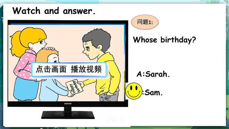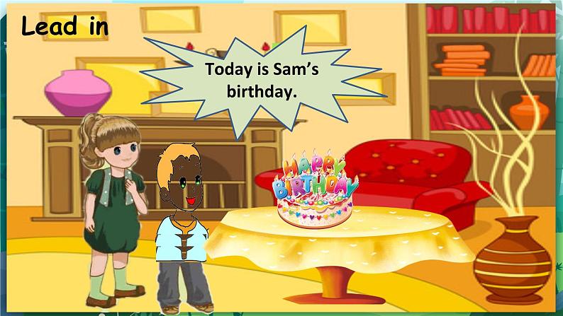 - Lead in: Today is Sam’s birthday.Let’s sing Happy birthday song for Sam.