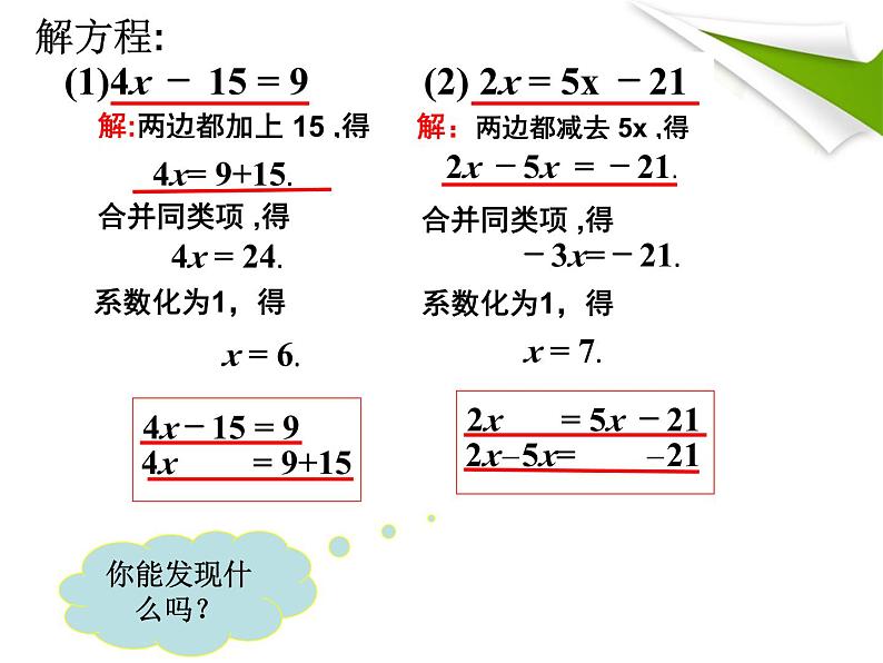 移项实际上是利用等式的性质1,但是解题步骤更为简捷!