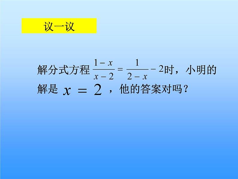 解分式方程 时,小明的解是 ,他的答案对吗?