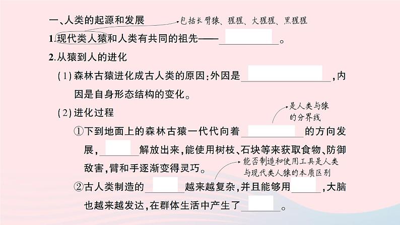 这是一份2023七年级生物下册第四单元生物圈中的人第一章人的由来重点题型突破作业课件新版新人教版,共8页。