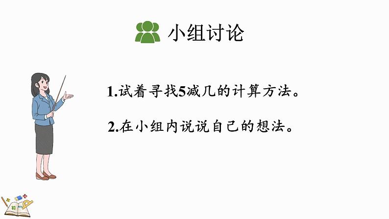 1.试着寻找5减几的计算方法。