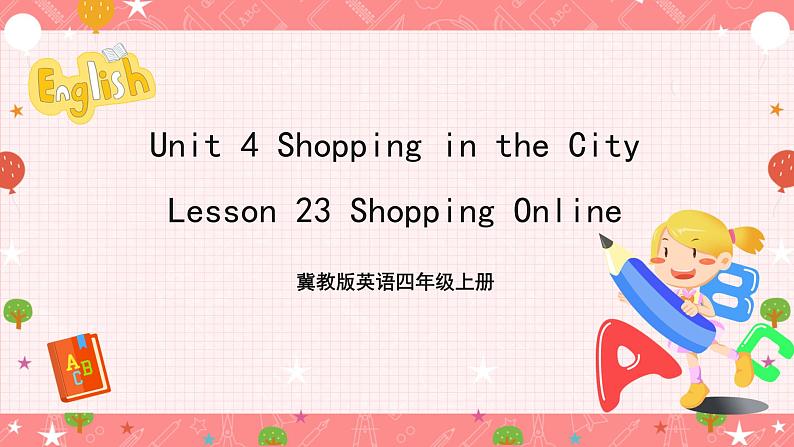 这是一份冀教版 (三年级起点)四年级上册Lesson 23 Shopping Online完美版课件ppt,文件包含四年级上册英语-Unit4Lesson23ShoppingOnline课件pptx、冀教版三起英语四年级上册-Unit4Lesson23ShoppingOnline教案docx、冀教版三起英语四年级上册-Unit4Lesson23ShoppingOnline练习word含答案docx、lesson23_3mp3等4份课件配套教学资源,其中PPT共16页, 欢迎下载使用。