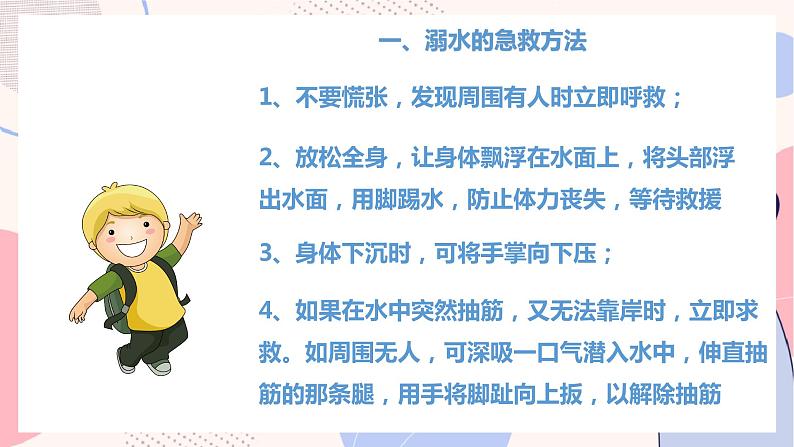 小学生主题班会通用版开学第一课 珍爱生命 安全伴我行 课件: 这是一份小学生主题班会通用版开学第一课 珍爱生命 安全伴我行 课件,共21页。PPT课件主要包含了预防溺水,什么是溺水,消防安全,交通安全,毒品预防等内容,欢迎下载使用。