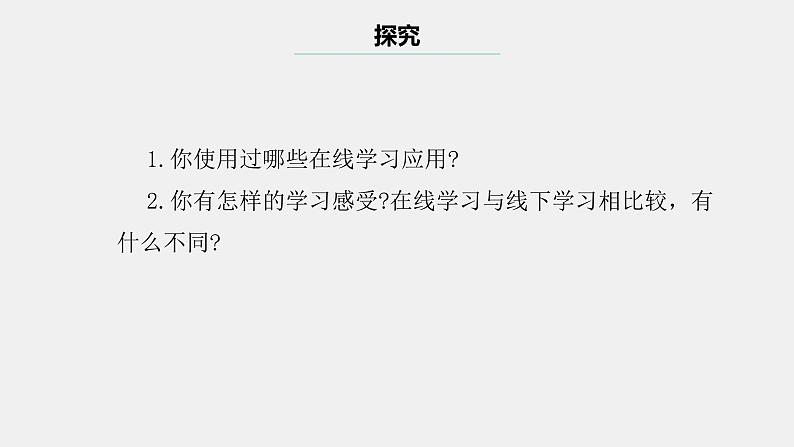 1.你使用过哪些在线学习应用?2.你有怎样的学习感受?在线学习与线下学习相比较,有什么不同?