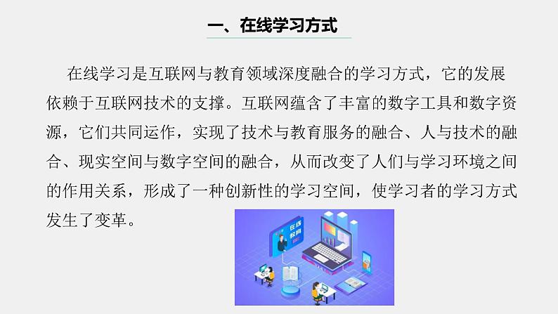 随着大数据、人工智能等新技术的不断发展与普及,人们的学习方式正发生着变革。网络学习平台的蓬勃兴起,数字学习资源的不断丰富,构建了全新的学习环境,诞生了一种基于网络的学习方式——在线学习。