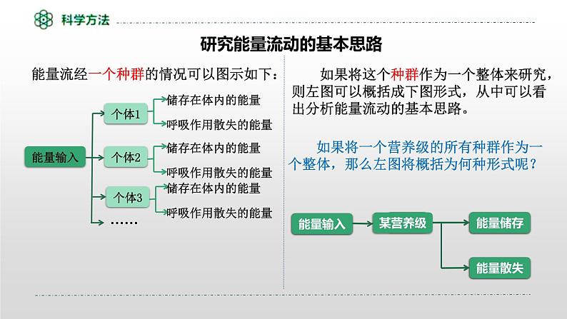 如果将这个种群作为一个整体来研究,则左图可以概括成下图形式,从中可以看出分析能量流动的基本思路。