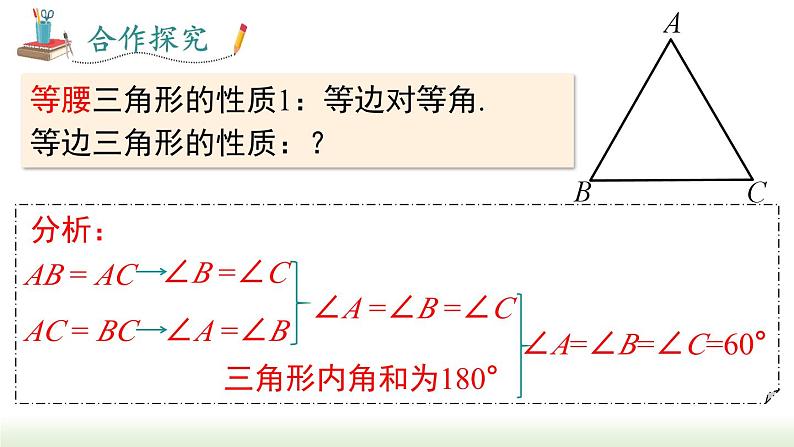 这是一份初中数学人教版八年级上册第十三章 轴对称13.3 等腰三角形13.3.2 等边三角形教学课件ppt,共16页。