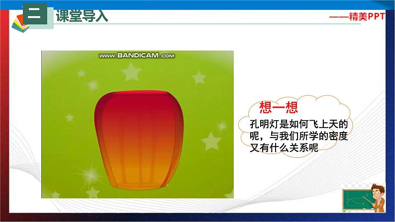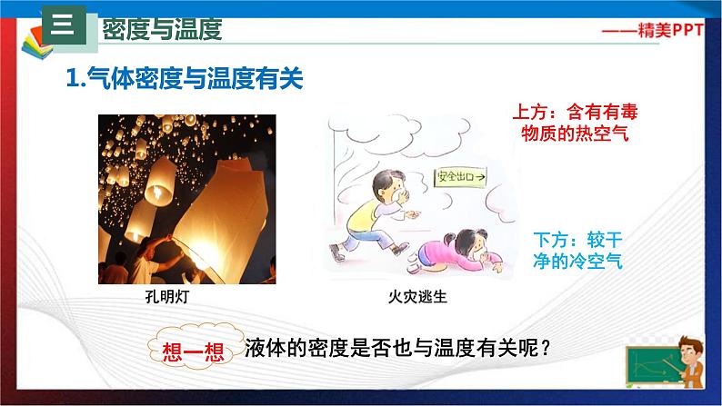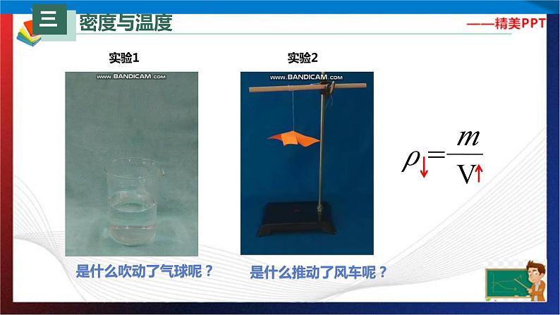 这是一份初中物理人教版八年级上册第4节 密度与社会生活备课课件ppt,共24页。PPT课件主要包含了课堂导入,密度与温度,实验1,实验2,是什么推动了风车呢,是什么吹动了气球呢,孔明灯,火灾逃生,下方较干净的冷空气,热水的密度等内容,欢迎下载使用。