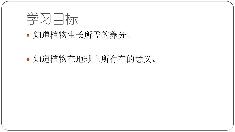 展开知道植物生长所需的养分。知道植物在地球上所存在的意义。
