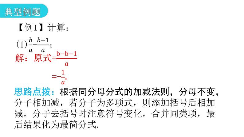 思路点拨:根据异分母分式的加减法法则,先通分,变为同分母的分式再相加减.