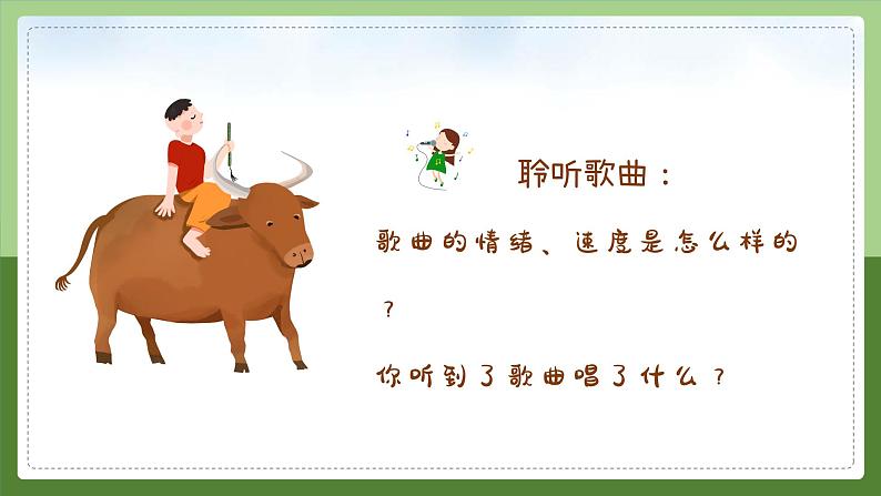 聆听歌曲:歌曲的情绪、速度是怎么样的?你听到了歌曲唱了什么?