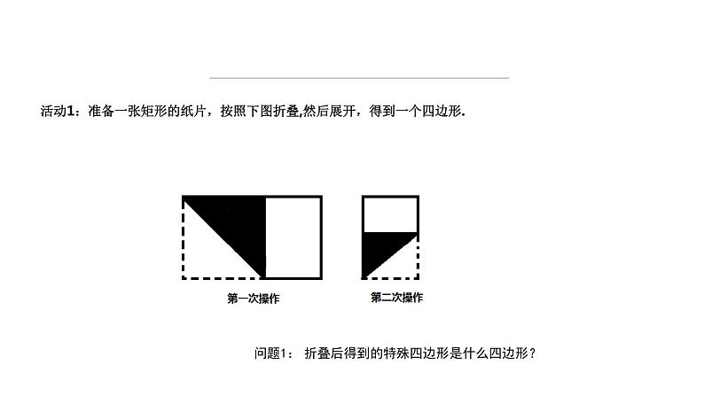 活动1:准备一张矩形的纸片,按照下图折叠,然后展开,得到一个四边形.