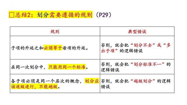 错误表现:否则,就会犯“划分不全”或“多出子项”的逻辑错误。