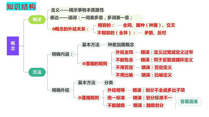 这是一份第四课准确把握概念课件-2024届高考政治一轮复习统编版选择性必修三逻辑与思维,共35页。PPT课件主要包含了准确把握概念,相容的,不相容的全异,基本方法,种差加属概念,明确外延,明确内涵,错误否定定义,错误比喻定义,错误越级划分等内容,欢迎下载使用。
