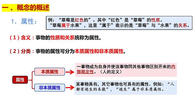 (2)分类:事物的属性可分为本质属性和非本质属性。