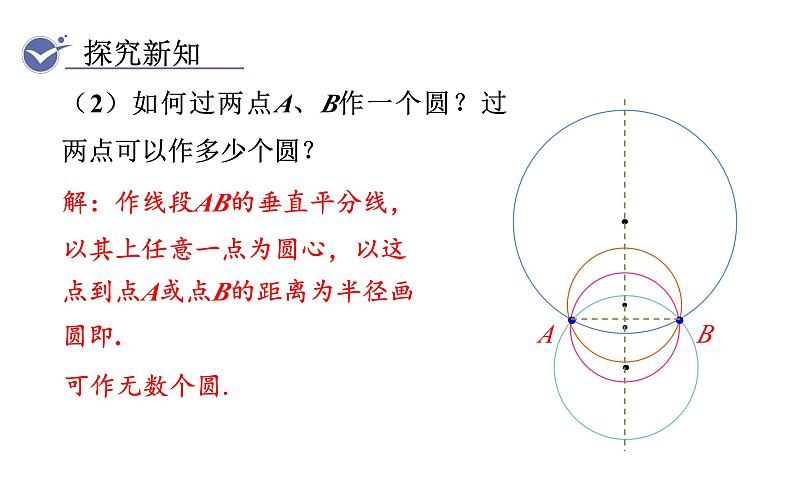 (2)如何过两点A、B作一个圆?过两点可以作多少个圆?