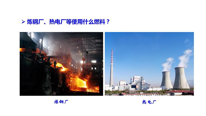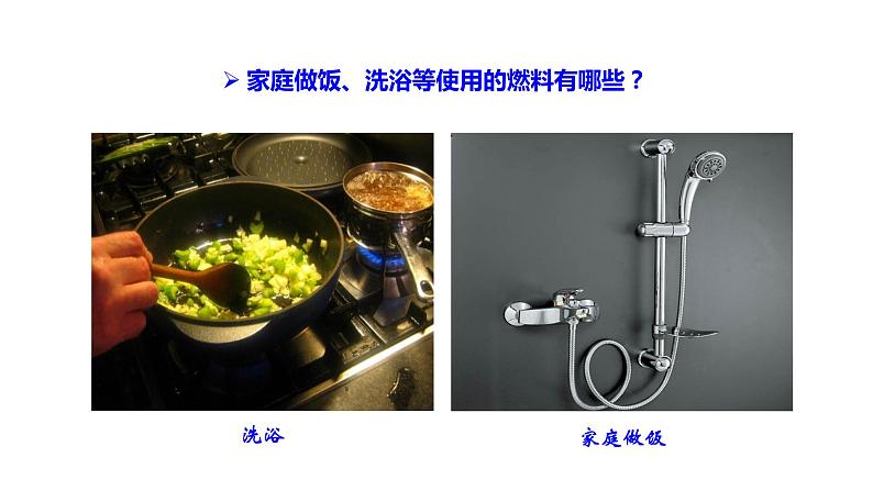 家庭做饭、洗浴等使用的燃料主要有天然气以及煤等。汽车、飞机、轮船、火车、拖拉机等交通工具主要使用的是石油产品。炼钢厂、热电厂等主要使用的是煤。