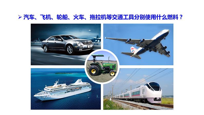 汽车、飞机、轮船、火车、拖拉机等交通工具分别使用什么燃料?