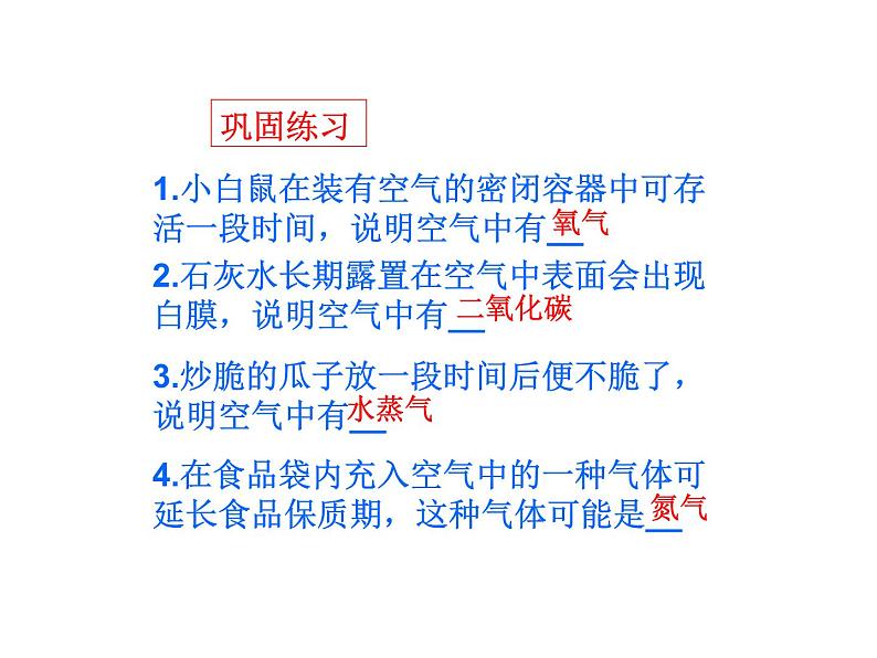 1.小白鼠在装有空气的密闭容器中可存活一段时间,说明空气中有__