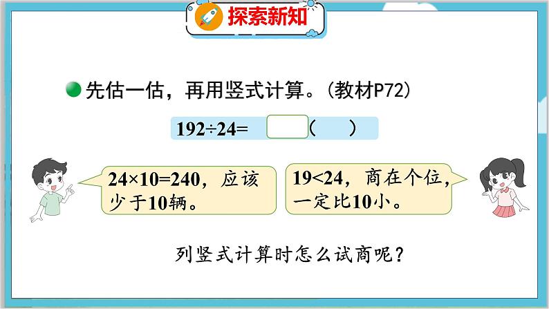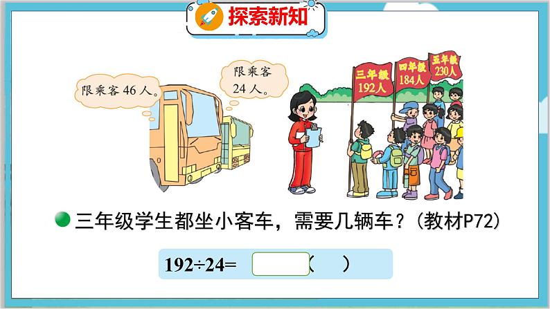 四年级学生都坐大客车,需要几辆车?(教材P72)