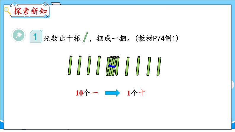 1. 能够正确地数出数量在11~20的事物的个数。2. 认识11~20各数,并会写11~20各数。(重点)3. 明确10个一是1个十。(难点)