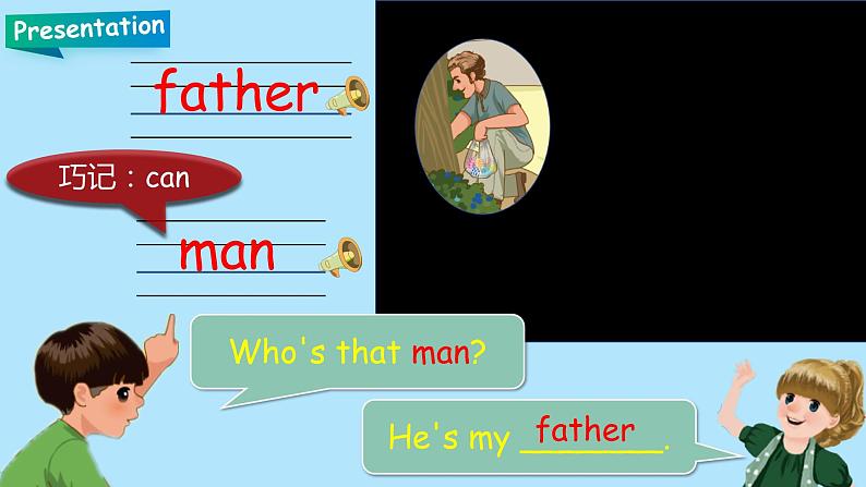 这是一份部编版PEP三年级下册 Unit2 My family PA let's learn 课件+教案+练习+动画素材,文件包含部编PEP三年级下册Unit2MyfamilyPAletslearn课件pptx、精优公开课Unit2MyfamilyPAletslearn教案doc、口试+笔试Unit2MyfamilyPALetslearn练习含答案doc、mummp3、learnmp4、chant1mp4、Family-爱的表达式mp4、音频allmp3、womanwma、son音频mp3、singmp3、manwma、motherwma、learnMP3、fatherwma、familymp3、dadmp3、chantA音频mp3、Whosthatwomanmp3、Shesmymothermp3、sing课文动画mp4等21份课件配套教学资源,其中PPT共28页, 欢迎下载使用。