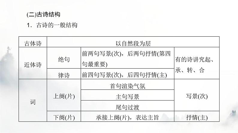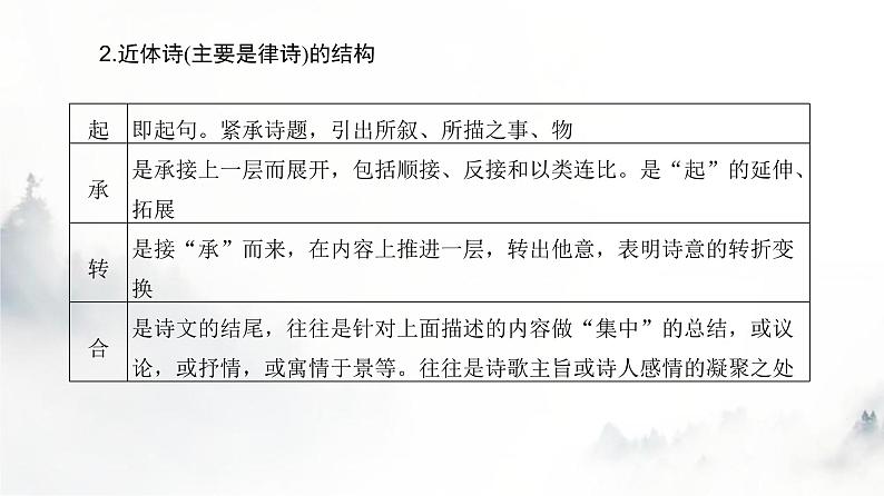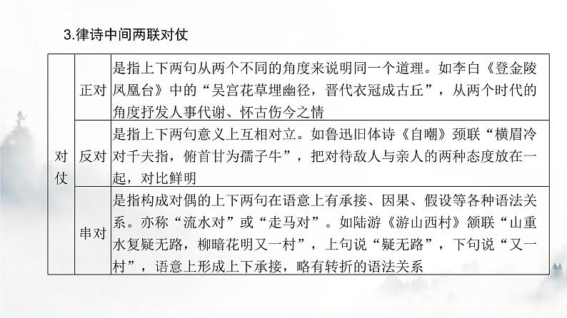 这是一份2024届高考语文一轮总复习第二部分古代诗文阅读板块二古代诗歌鉴赏专题一诗歌基础篇第1讲“五角度”教你读懂诗歌课件,共57页。PPT课件主要包含了律诗中间两联对仗,答案B,续上表,答案D,答案C,答案A等内容,欢迎下载使用。