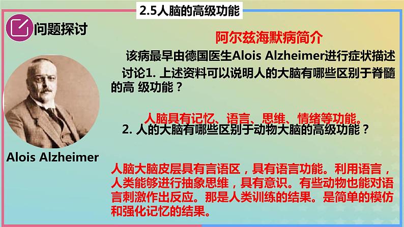 问题:脑的哪些结构与上述功能有关?学习和记忆作为脑的高级功能是如何进行的?情绪又是怎么一回事呢?