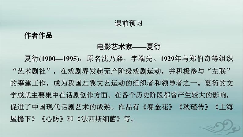 这是一份人教统编版选择性必修 中册第四单元12 玩偶之家(节选)课前预习ppt课件,共60页。PPT课件主要包含了预习·语言建构与运用,字音识记,字形识记,使人不明白,完全不放在心上,得起检验,积累·文化传承与理解,探究·思维发展与提升,玩偶之家节选,延伸·审美鉴赏与创造等内容,欢迎下载使用。