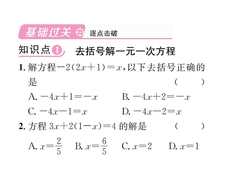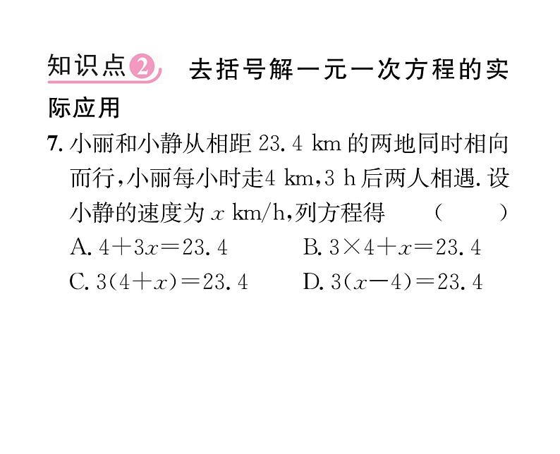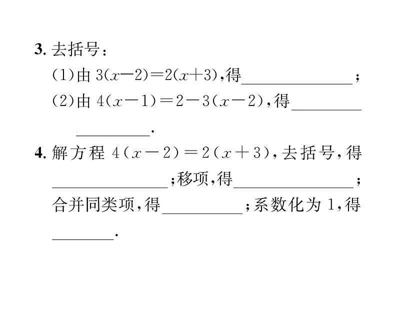 数学七年级上册第三章 一元一次方程3.3 解一元一次方程(二)----去括号与去分母课前预习课件ppt: