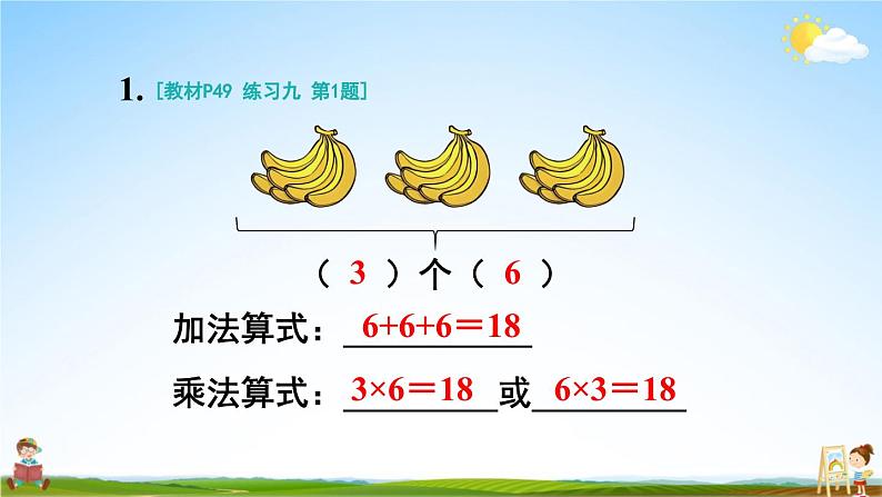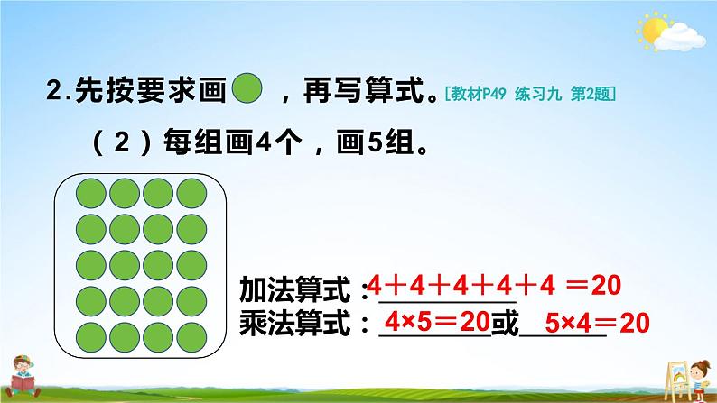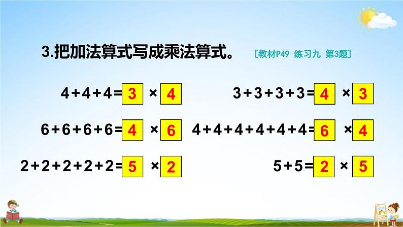 这是一份人教版二年级上册3 角的初步认识教学ppt课件,共18页。PPT课件主要包含了+5+5+5=20,×5=20,×4=20,+6+6=18,×6=18,×3=18,+2+2=6,×3=6,×2=6,+5×等内容,欢迎下载使用。
