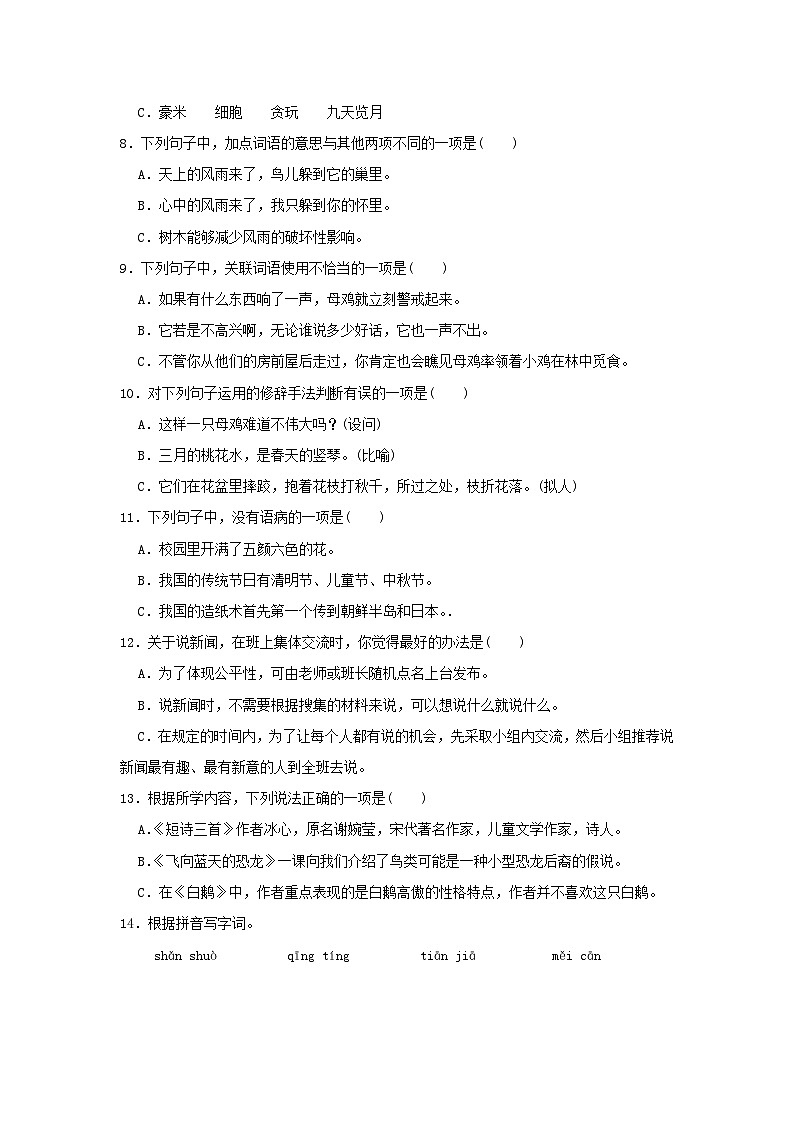 2022-2023学年广东省深圳市福田区四年级下学期期末语文真题及答案: 这是一份2022-2023学年广东省深圳市福田区四年级下学期期末语文真题及答案,共17页。试卷主要包含了下列词语书写完全正确的一项是等内容,欢迎下载使用。
