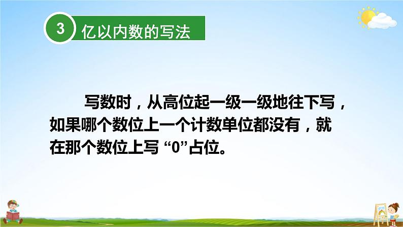 整万、整亿数的改写方法:将整万数个级的4个0去掉,同时在后面加上“万”字;将整亿数个级、万级的8个0去掉,同时在后面加上“亿”字。