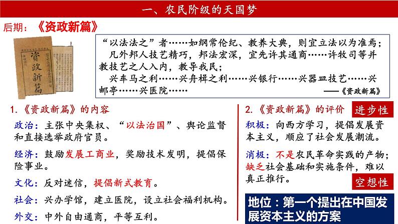 这是一份人教统编版(必修)中外历史纲要(上)第16课 国家出路的探索与列强侵略的加剧教课内容课件ppt,共18页。PPT课件主要包含了出路在哪,金田起义,永安建制,定都天京,全盛时期,天京变乱,天京陷落,最终失败,重建核心,①军事工业等内容,欢迎下载使用。