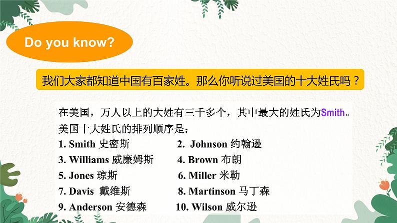 我们大家都知道中国有百家姓。那么你听说过美国的十大姓氏吗?