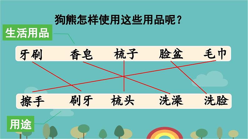 狗熊怎样使用这些用品呢?