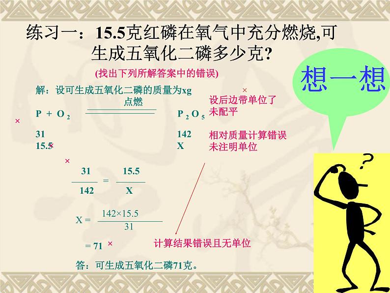 练习一:15.5克红磷在氧气中充分燃烧,可 生成五氧化二磷多少克?
