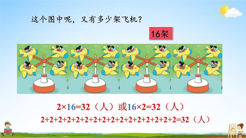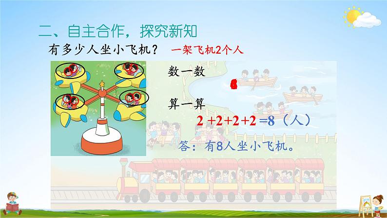 这是一份小学数学北师大版二年级上册儿童乐园教学ppt课件,共17页。PPT课件主要包含了个2相加,×39人,课堂小结等内容,欢迎下载使用。