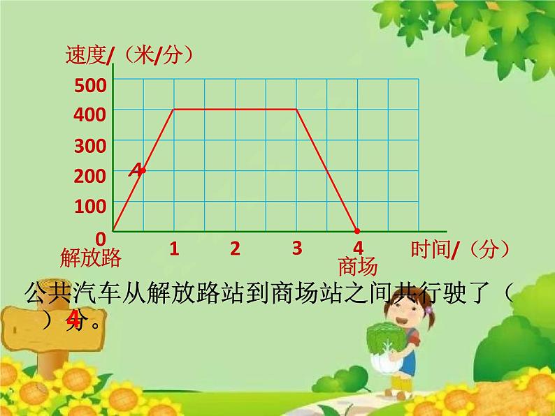 从( )分到( )分,汽车行驶速度保持不变,是( )米/分。