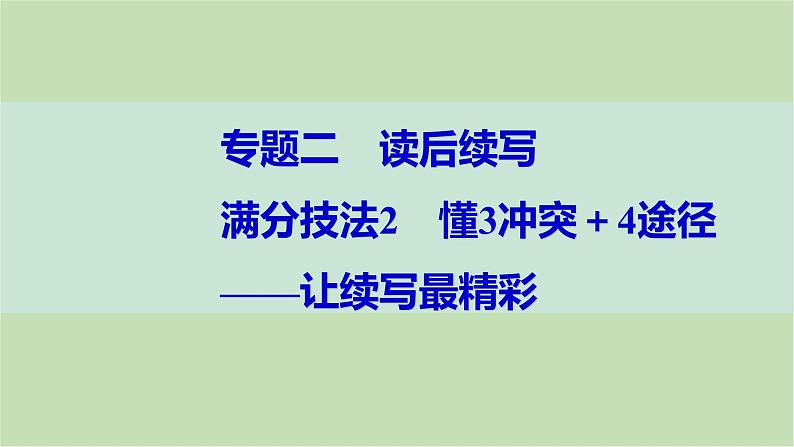 这是一份2024届高考英语一轮复习-满分技法2 懂3冲突+4途径——让续写最精彩课件,共21页。