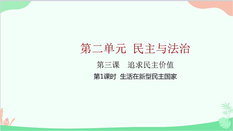 人教部编版九年级上册第二单元 民主与法治第三课 追求民主价值生活在新型民主国家课前预习ppt课件: