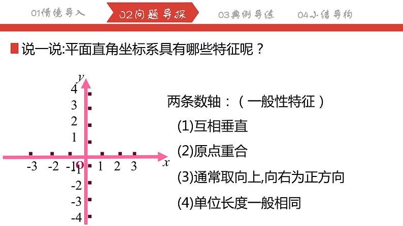 探究四:x、y轴上的点的横、纵坐标有什么特点?