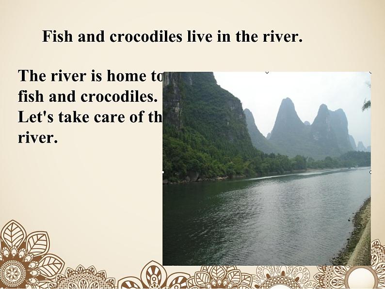 The river is hme t fish and crcdiles.Let's take care f the river.