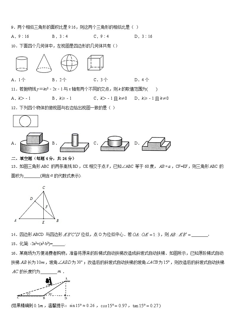 9.两个相似三角形的面积比是9:16,则这两个三角形的相似比是( )